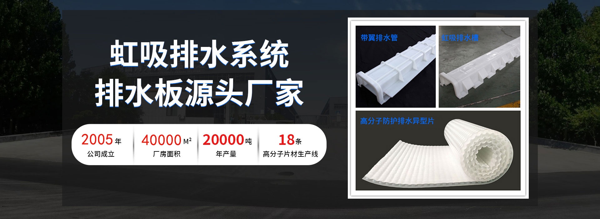 四川興美鑫環保科技集團有限公司由原成都鑫玥塑膠模具有限公司發展而來。老公司成都鑫玥塑膠模具有限公司成立于2009年,新公司四川興美鑫環保科技集團有限公司成立于2017年,系西南地區植草格、排水板生產企業,歷史悠久、經驗豐富。公司坐落于四川省成都市金堂縣三溪鎮工業戰略前沿區玉圣路1號(金堂工業園內),占地50余畝,已有員工100余人。主要經營環保技術開發;生產、研發、銷售:土工合成材料、塑料制品、金屬制品、橡膠制品、水泥制品、防水涂料、防水卷材、建材、管材、土工布、土工格柵、土工網墊、鋁塑板;功能高分子塑料制造;環境保護專用設備制造;模具制造;防腐工程;環保工程;河源整治工程;防水工程;工礦防滲工程設計、施工;銷售:節能產品、機電設備、暖通設備、環保設備、水處理設備;大氣污染治理;雨水的收集、處理、利用;污水的收集、處理及深度凈化;貨物及技術進出口。
